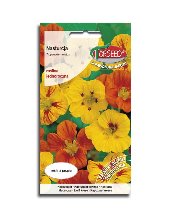 Nasturcja wysoka mieszana (Tropaeolum majus) to popularna roślina ogrodowa, znana ze swoich jaskrawych kwiatów i łatwej uprawy.