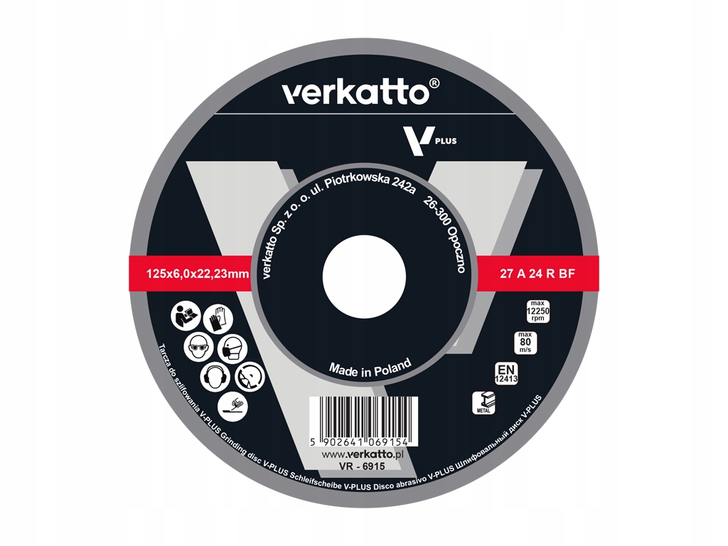 Tarcza do szlifowania metalu V-PLUS o wymiarach 125x6,0 mm (model VR-6915) to wysokiej jakości narzędzie przeznaczone do obróbki metalu.